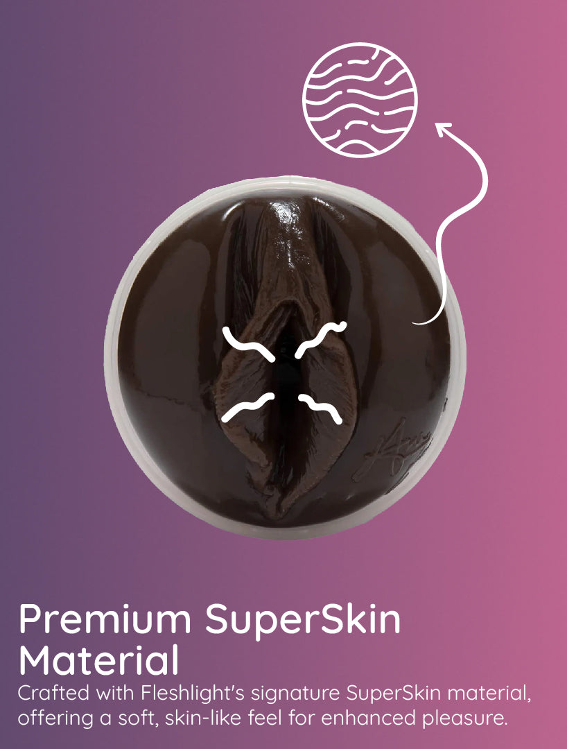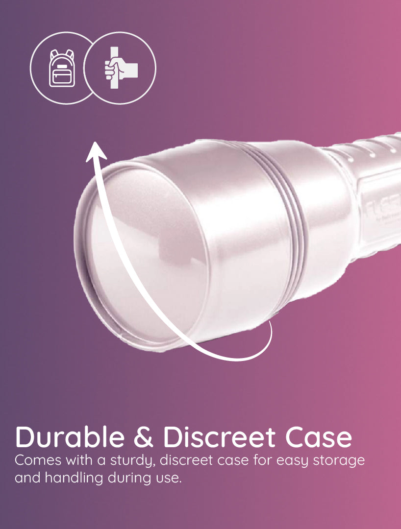 This masturbator's layout is designed to resemble a conventional spotlight, which not only appears sleek but also provides you with a good and secure grip to increase the fun. Aside from keeping your Fleshlight Girl in your palm, you could squeeze the case between sofa cushions or pillows to use it hands-free, or try a unique position that lets you both cuddle. The innovative, ultra-safe super skin fabric that makes up the flexible inner cover is super soft and natural to the touch, and you'll love how it warms up to body temperature with use.