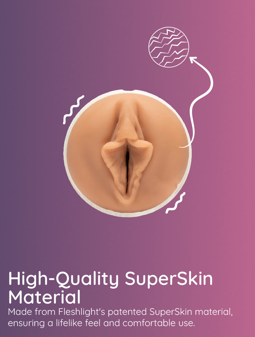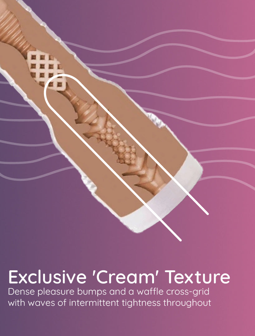 Inside, sleeves are made with realistic and high-quality Superkin material that looks like real skin and it's adapted to the temperature of your body so it will be more realistic. The first chamber of the sleeve is lined with a firm ribbed-like texture which generates a pulsating sensation as you move over it. The second is lined with a fine net-like texture that feels as close to the inside of a real vagina as you could ever hope to achieve from a toy. In fact, this is so lifelike if you have used a sleeve warmer you will genuinely feel like you are inside a real woman. This third and final chamber is the real gem in the crown of the Cream Fleshlight sleeve. It begins at its narrowest point and grows wider until the end. It is lined with a ribbed texture which generates a pulsating effect. The fact this chamber only ever touches the tip and most sensitive part of the penis results in a highly intense climax you will want to experience over and over. Fleshlight Girls Autumn Falls masturbator includes two caps, the main, to cover the sleeve, and the second to regulate pressure.