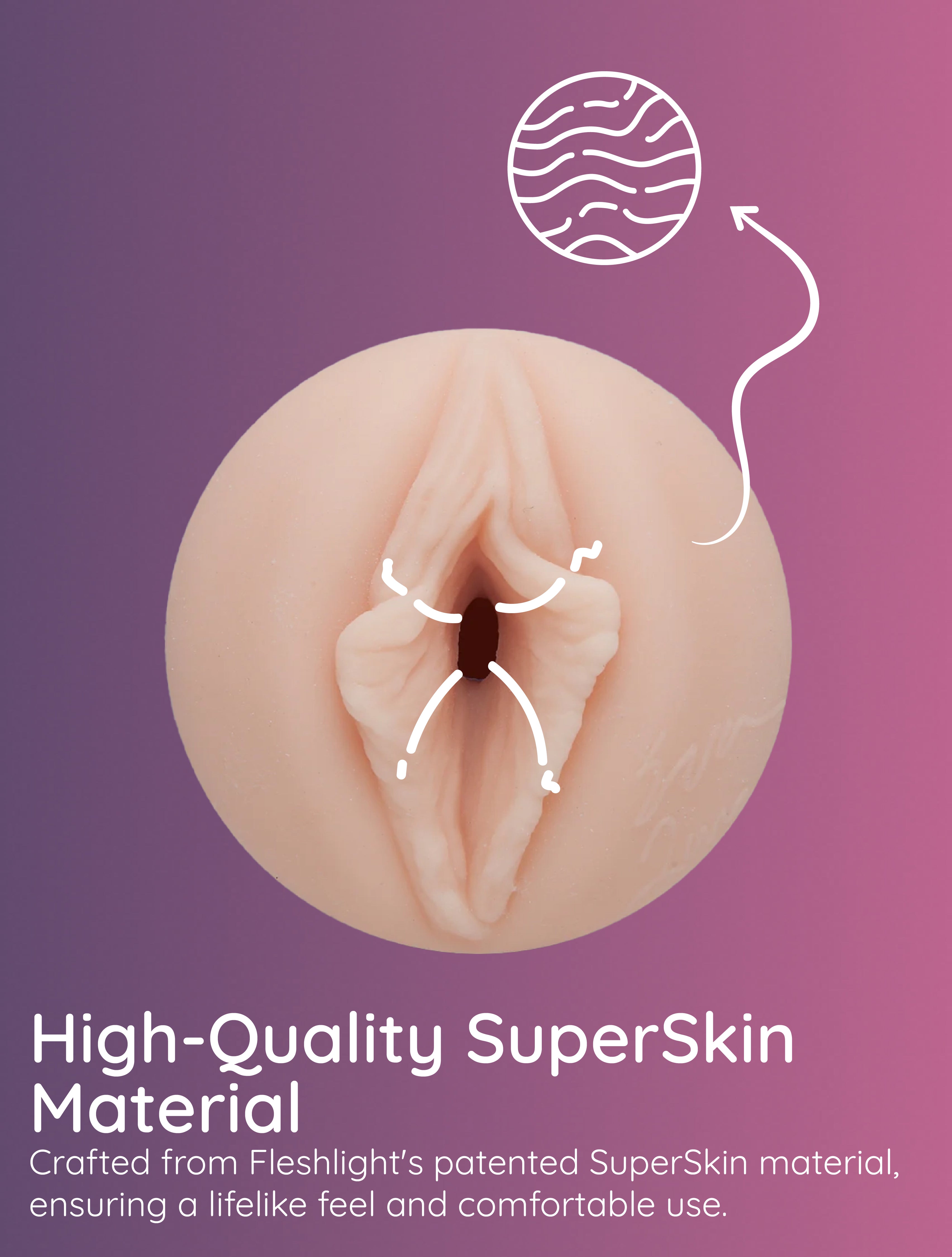 The innovative, ultra-safe super skin material making up the removable interior sleeve is incredibly soft and warms up to feel like real flesh. It retains its shape and moves along with your penis for a tight grip, giving you the feel of being inside the adult star, herself. For a more realistic experience, try heating the sleeve in warm water but do not think of a microwave or oven for this. The masturbator has a total length of 10 inches, and a canal girth of approximately 3 inches to accommodate your manhood comfortably, and please you for as long as you want. Each Fleshlight Girls box includes a unique Fleshlight Pearlescent Case, Fleshlight Girls sleeve, Instruction/Care manual, and a sample of water-based lubricant.