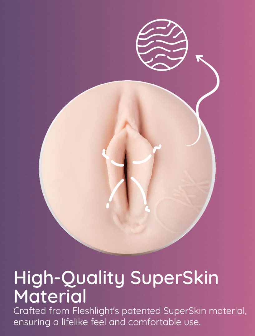 Made from ultra-safe superskin material, the fleshlight feels magically realistic and gives your manhood a delicious grip. The fleshlight has a total length of 10 inches and a girth of approximately 3 inches for the inner wall that is stretchable. Other features include her removable sleeve and the absence of phthalates in her pearl shape and lotus sleeve. The package comes in sealed and labeled retail packaging which contains a pearl fleshlight case, fleshlight girls sleeve, care manual, and a sample of water-based lubricant.