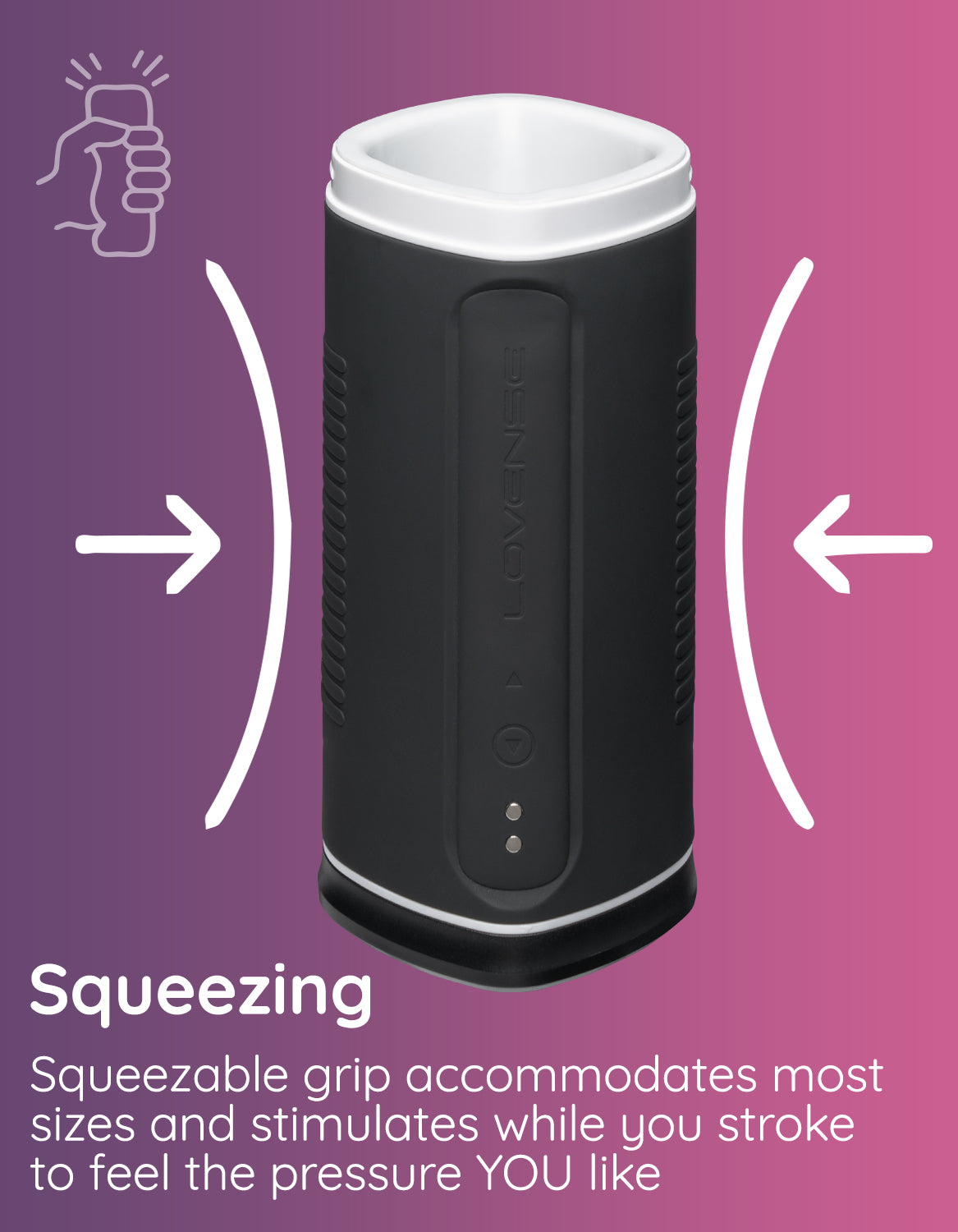 Choose a power level to match your body's needs and save it for later use. Also, program up to 10 favorite patterns just as YOU want them. Squeezable grip accommodates most sizes and stimulates while you stroke. Leave the strength of vibrations up to the toy - the deeper you insert, the more intense the vibrations are.