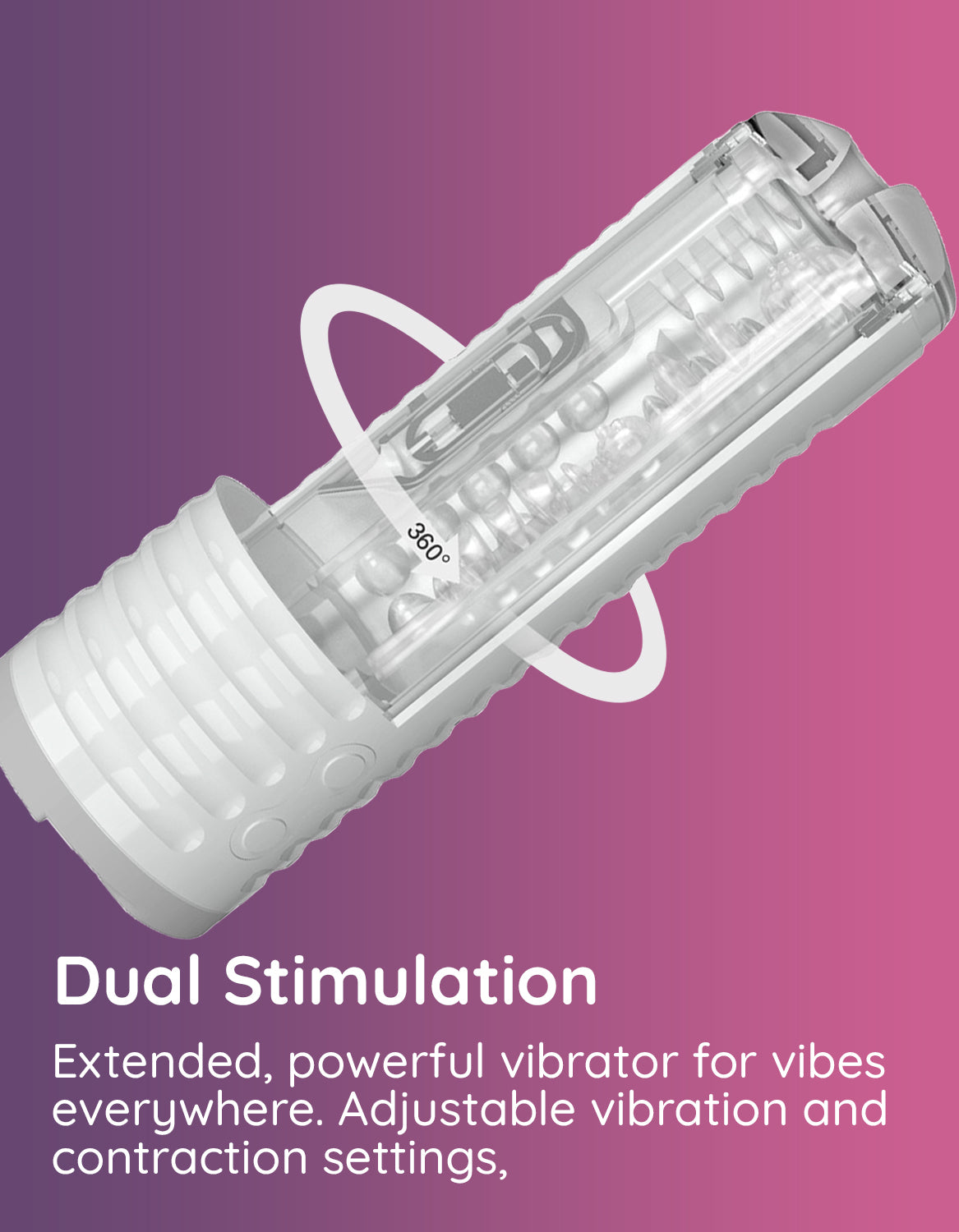 The upgraded version of the vibrator delivers such mighty vibrations; you will be a puddle of pleasure after the big-O. To make it run with you, you got to charge it first. This step has been made easier for you with a battery that takes 1.6hrs to charge fully so you can use it for up to 215 min. Get the full package with an Original Multiple-Sensation Sleeve that passes 360- degree vibrations just where you want- everywhere! The extended vibrator is made from body-safe ABS plastic/ TPE and that is not all! It is rechargeable and wireless so that your pleasure doesn’t stop at the plug! Enjoy the perfect length of 9.50 in and width of 3.33in with this masturbator.