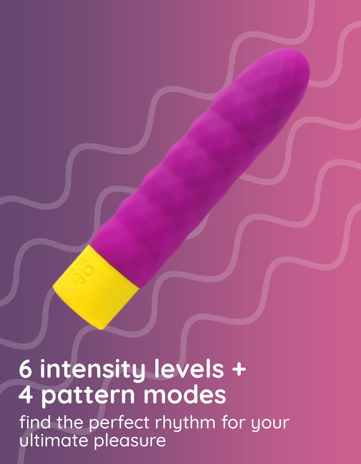 Turn your bed into the dance floor and find your favorite rhythm. It offers 6 vibration modes and 4 pattern modes so you can mix it up and match your desire. If you like being wet while getting wet, you can take this vibe in the bath as it is 100% waterproof. The vibrator possesses silky soft silicone material to give you fun without any funk! The body-safe silicone is gentle on your delicate bits. Your hot workout will last 60 minutes after charging its prismatic rechargeable battery for 180 minutes. This gorgeous, lightweight toy is 15.3 cm long, 3.2 cm wide, and weighs 35 grams. ROMP comes with a 2-year warranty to give you a worry-free purchase. Get the complete package- bullet vibrator beat, USB charging cable, lubricant sachet (5ml), and operating instructions.
