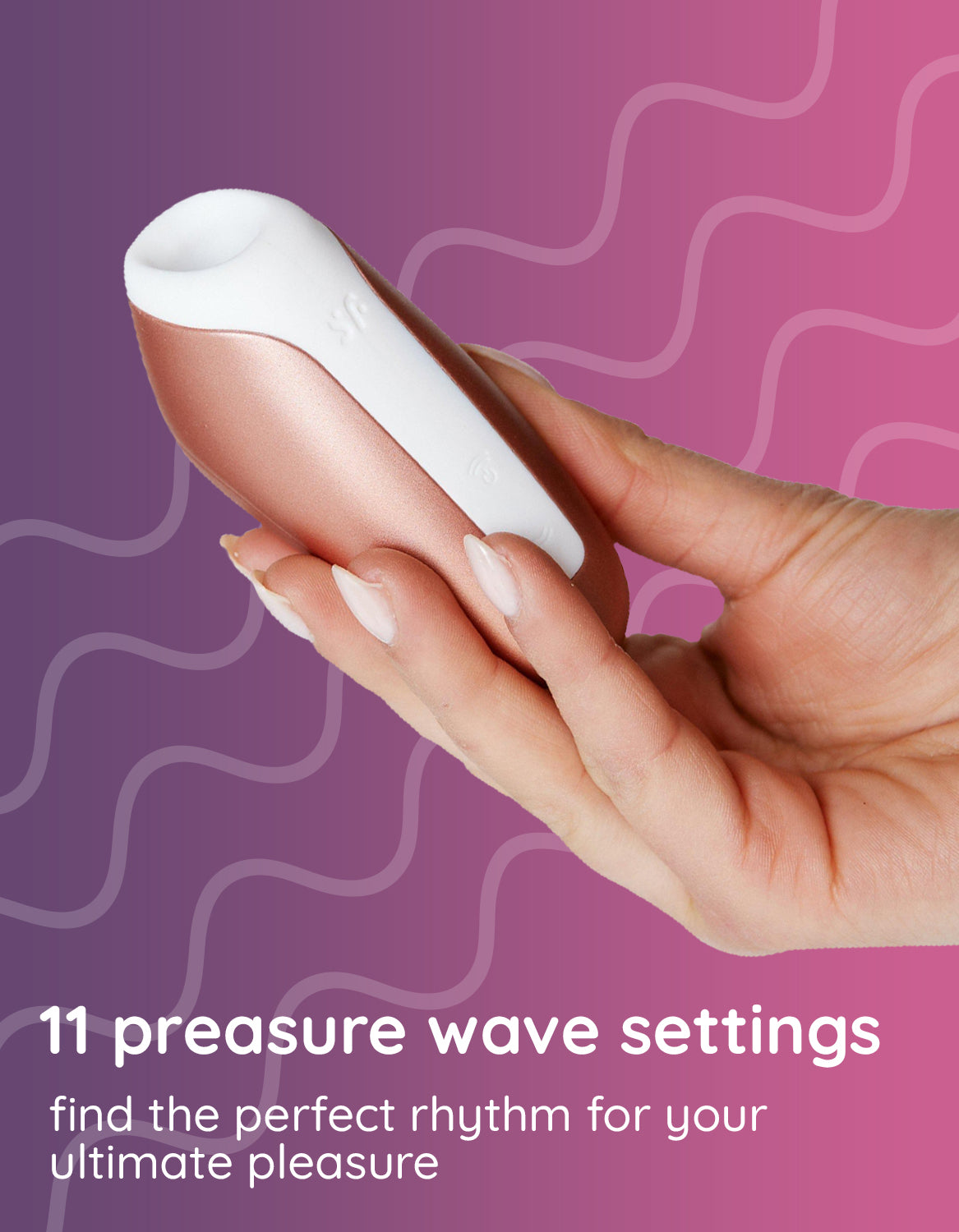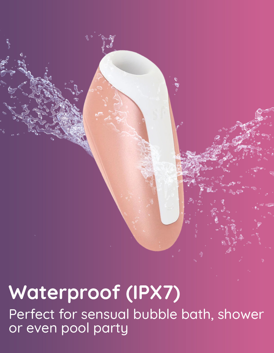 The Love Breeze’s application head is made of body-friendly, hygienic silicone and fits snugly around the clitoris. The material is especially supple and will seduce you with its delicate feel. Thanks to its waterproof (IPX7) finish, you can also use your Satisfyer Love Breeze in the shower or bathtub - and clean it easily with warm water and mild soap.
